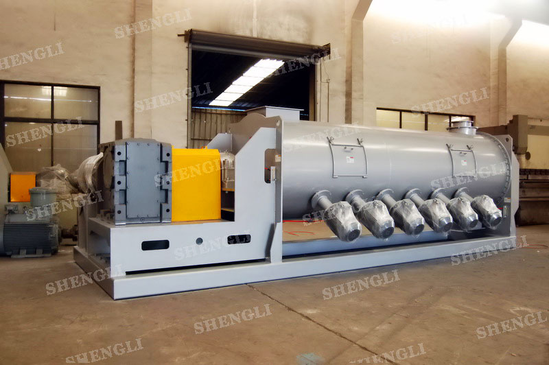 描述:犁刀连续式搅拌机卧式安装,进行连续式生产模式,内部配置犁刀配合多组高速飞刀能够有效打散、混合物料。设备主轴采用填料密封,配置基础安装框架,桶侧开设检修门。